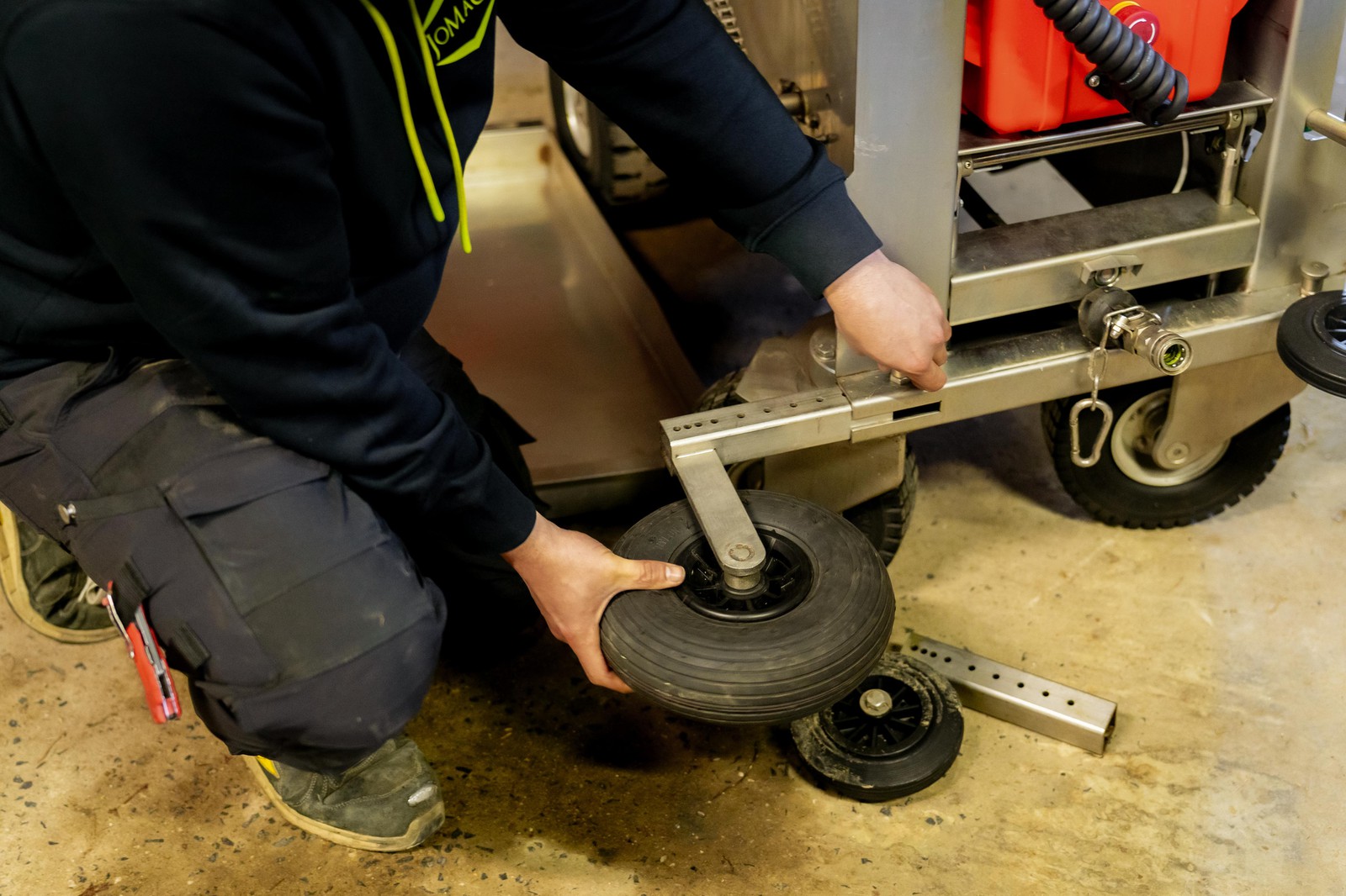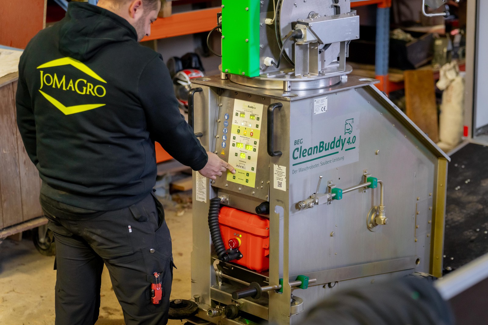 De robot wordt eenvoudig in de gang geplaatst, aangesloten op een hogedrukreiniger en ingesteld op de gewenste wandhoogte. Daarna start u de robot zonder u zorgen te moeten maken over een ingewikkelde programmatie. Dankzij slimme sensortechnologie detecteert de Cleanbuddy obstakels automatisch en garandeert u ook een snelle & doeltreffende reiniging.